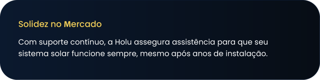 Estamos tão seguros de nossos serviços que criamos o Selo de Garantia Holu. Caso algo não seja resolvido, nós pagaremos a sua conta de luz e devolveremos o valor do projeto. Essa é a nossa forma de garantir a sua tranquilidade.